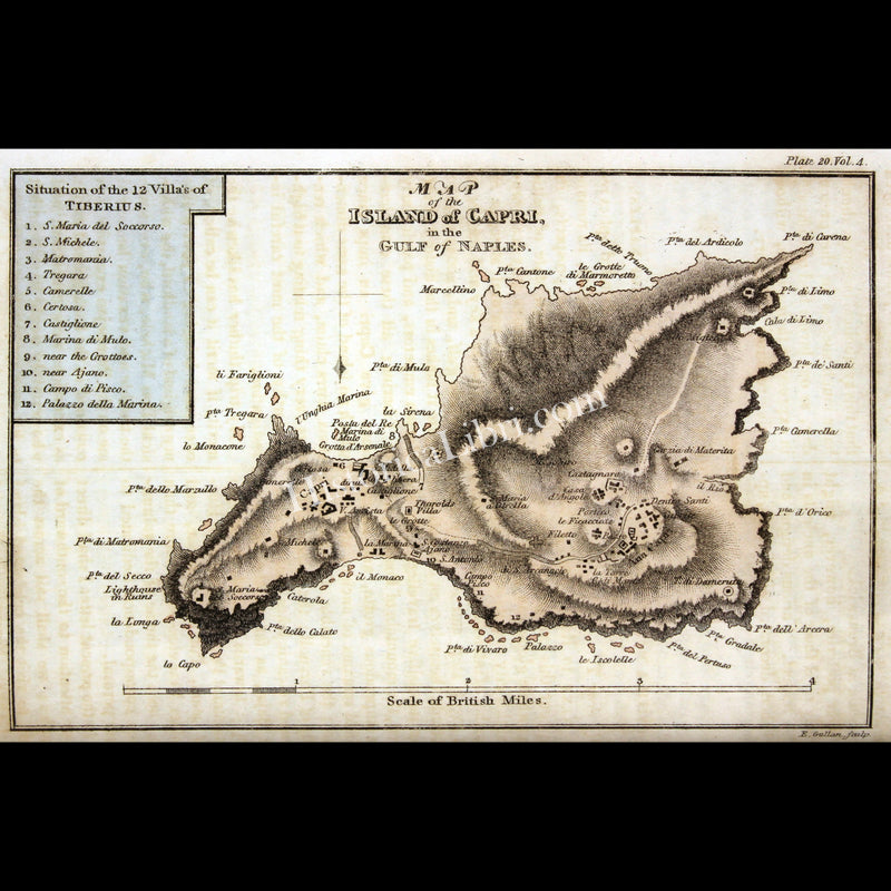 - Plate title : Map of the Island of Capri in the Gulf of Naples