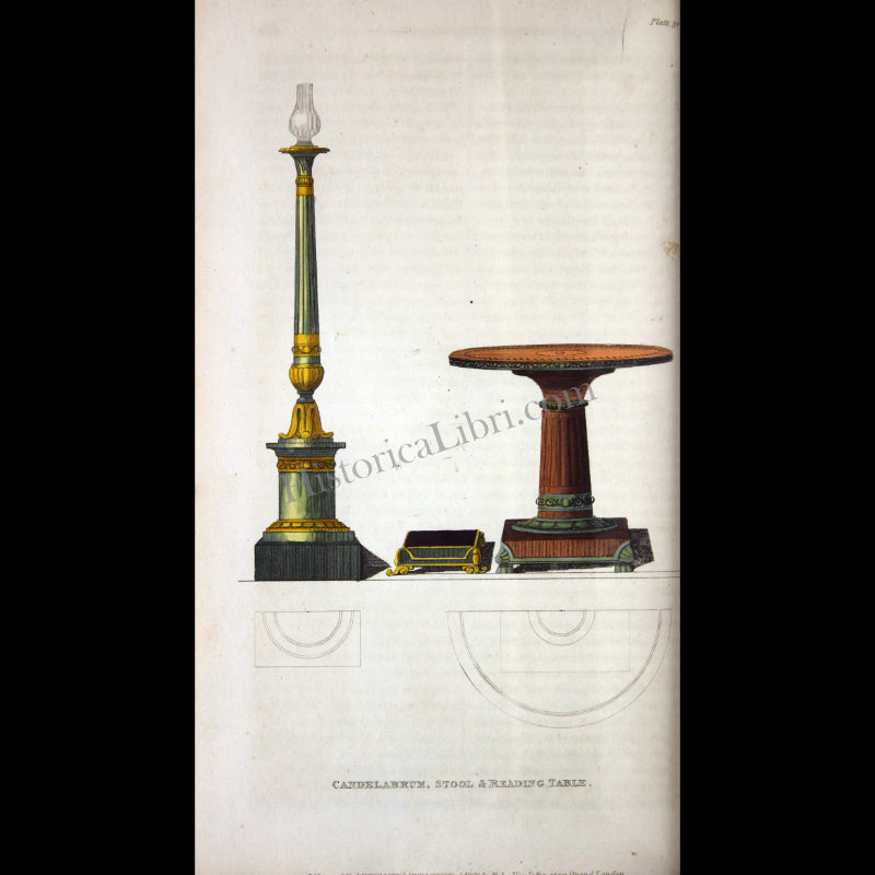 Ackermann's Repository 1812 November Plate 30 Candelabrum, Stool & Reading Table