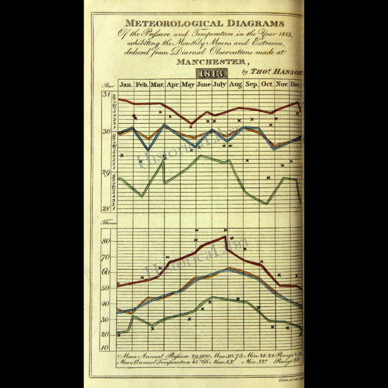 - Meteorological charts of the pressure and temperatures of year 1813. Observations made in Manchester.