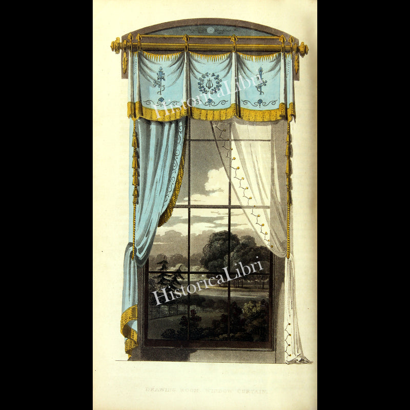 Ackermann's Repository 1815 March Plate 12 Drawing Room Window Curtain