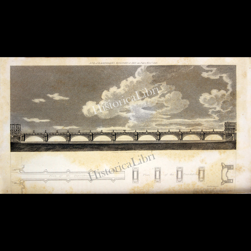 Ackermann's Repository 1816 November Plate 27 A Plan and Elevation of the New Bridge Now Building Over the River Thames