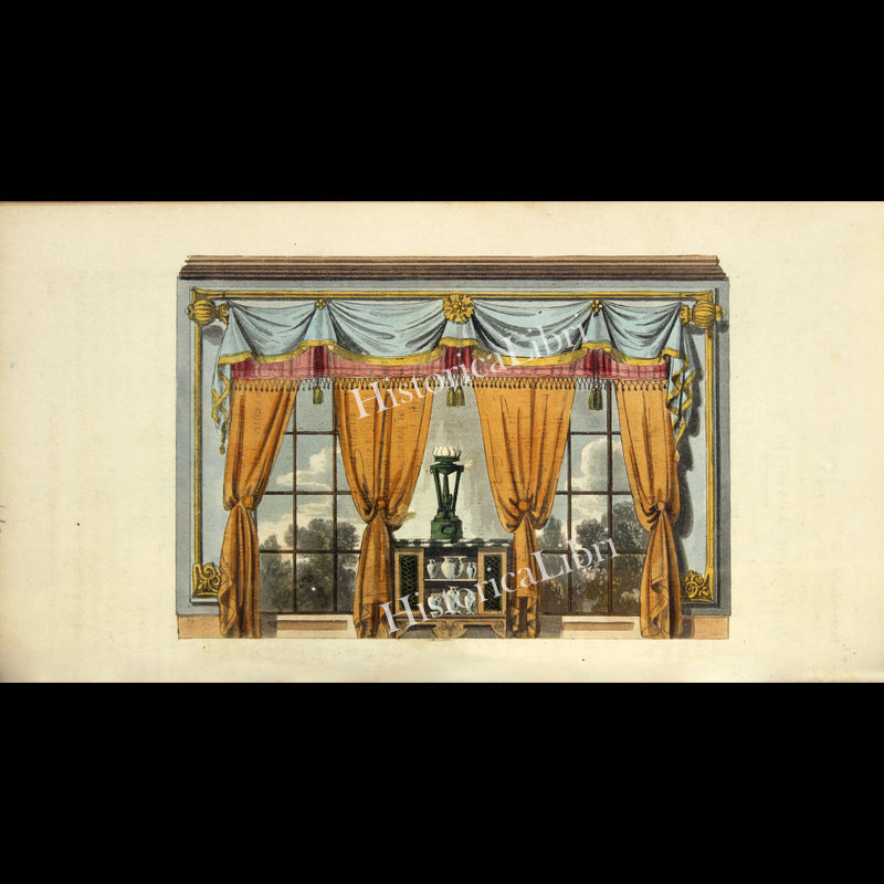 Ackermann's Repository 1817 April Plate 21 Drawing Room Window Curtains